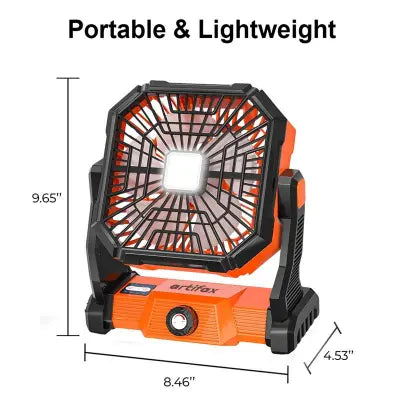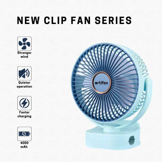 Artifax Portable Rechargeable Clip Fan with Backlit LED | 3-Speed Adjustable | 360° Vertical and Horizontal Rotation | 4-6 Hours Battery Life